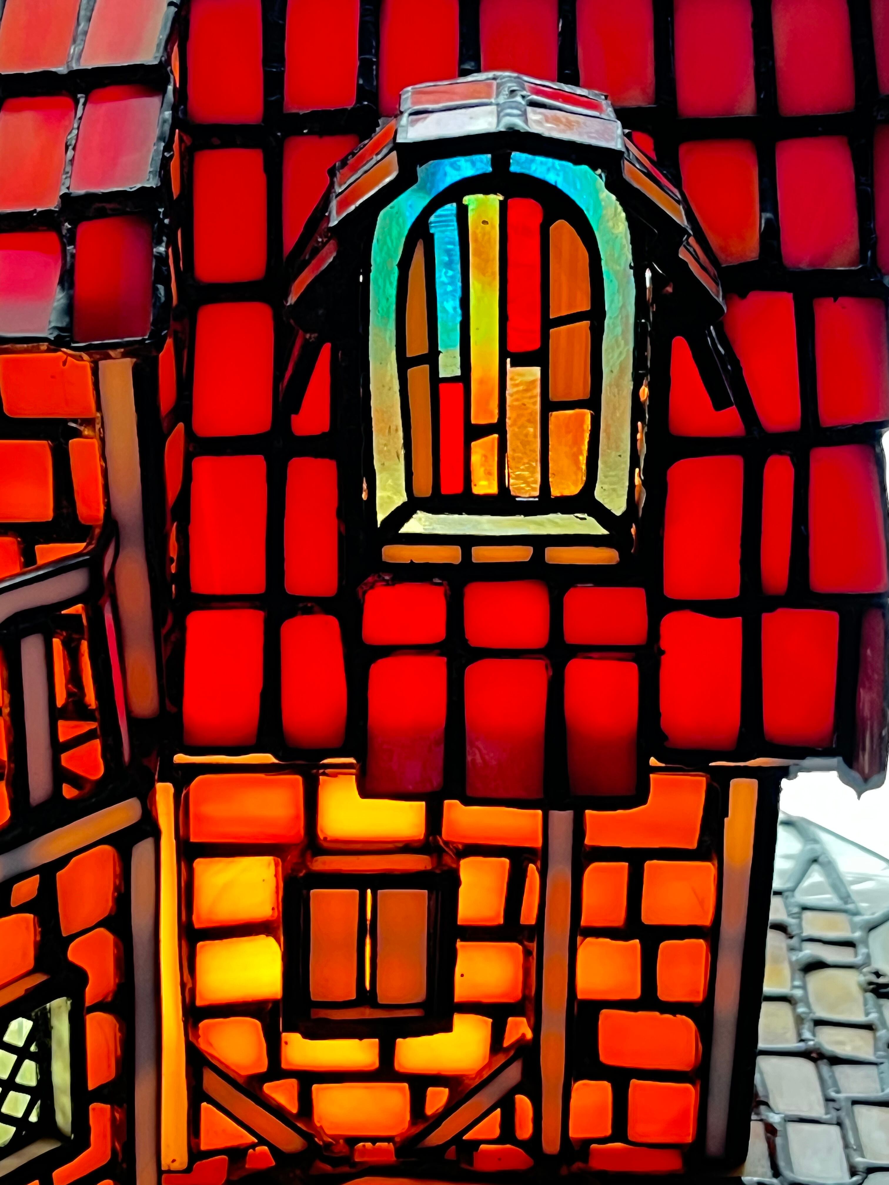 窓には小さなステンドグラスがはめ込まれておりまして、